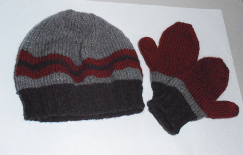 Como ainda tinha fio do gorro, conjuguei as mesmas cores, completando assim o conjunto.